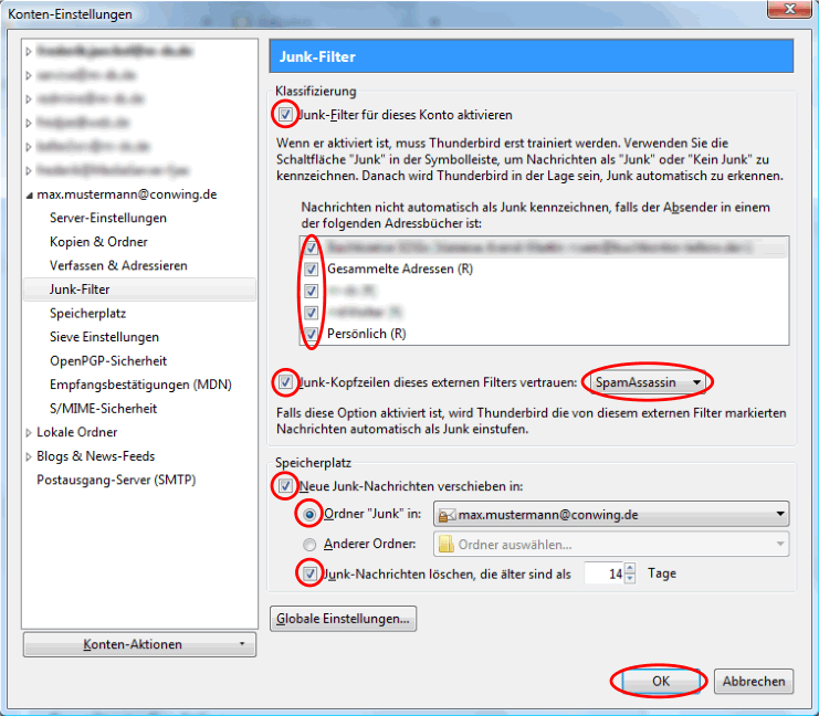 Einstellung in Thunderbird